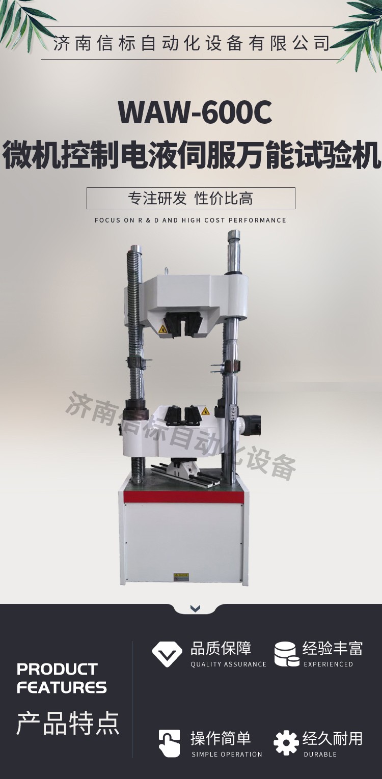 濟(jì)南信標(biāo)自動(dòng)化設(shè)備有限公司主要生產(chǎn):動(dòng)靜態(tài)萬(wàn)能疲勞試驗(yàn)機(jī),接骨板彎曲試驗(yàn)機(jī),縫合線(xiàn)拉伸疲勞試驗(yàn)機(jī),髖膝關(guān)節(jié)磨損試驗(yàn)機(jī),電子萬(wàn)能試驗(yàn)機(jī)、液壓萬(wàn)能試驗(yàn)機(jī)、巖石三軸、四軸,電液拉力試驗(yàn)機(jī),材料試驗(yàn)機(jī),高低溫蠕變,高低頻疲勞,拉伸、扭轉(zhuǎn)、杯突等二十多個(gè)系列兩千多個(gè)的品種。
