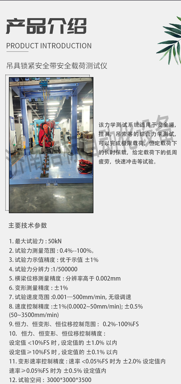 吊具鎖緊安全帶安全載荷測(cè)試儀 安全吊具力學(xué)性能測(cè)試系統(tǒng)