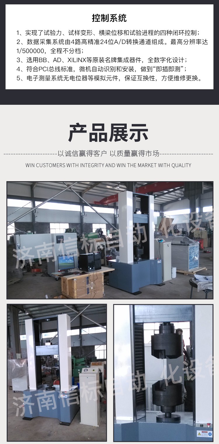 濟南信標自動化設備有限公司主要生產:動靜態萬能疲勞試驗機,接骨板彎曲試驗機,縫合線拉伸疲勞試驗機,髖膝關節磨損試驗機,電子萬能試驗機、液壓萬能試驗機、巖石三軸、四軸,電液拉力試驗機,材料試驗機,高低溫蠕變,高低頻疲勞,拉伸、扭轉、杯突等二十多個系列兩千多個的品種。