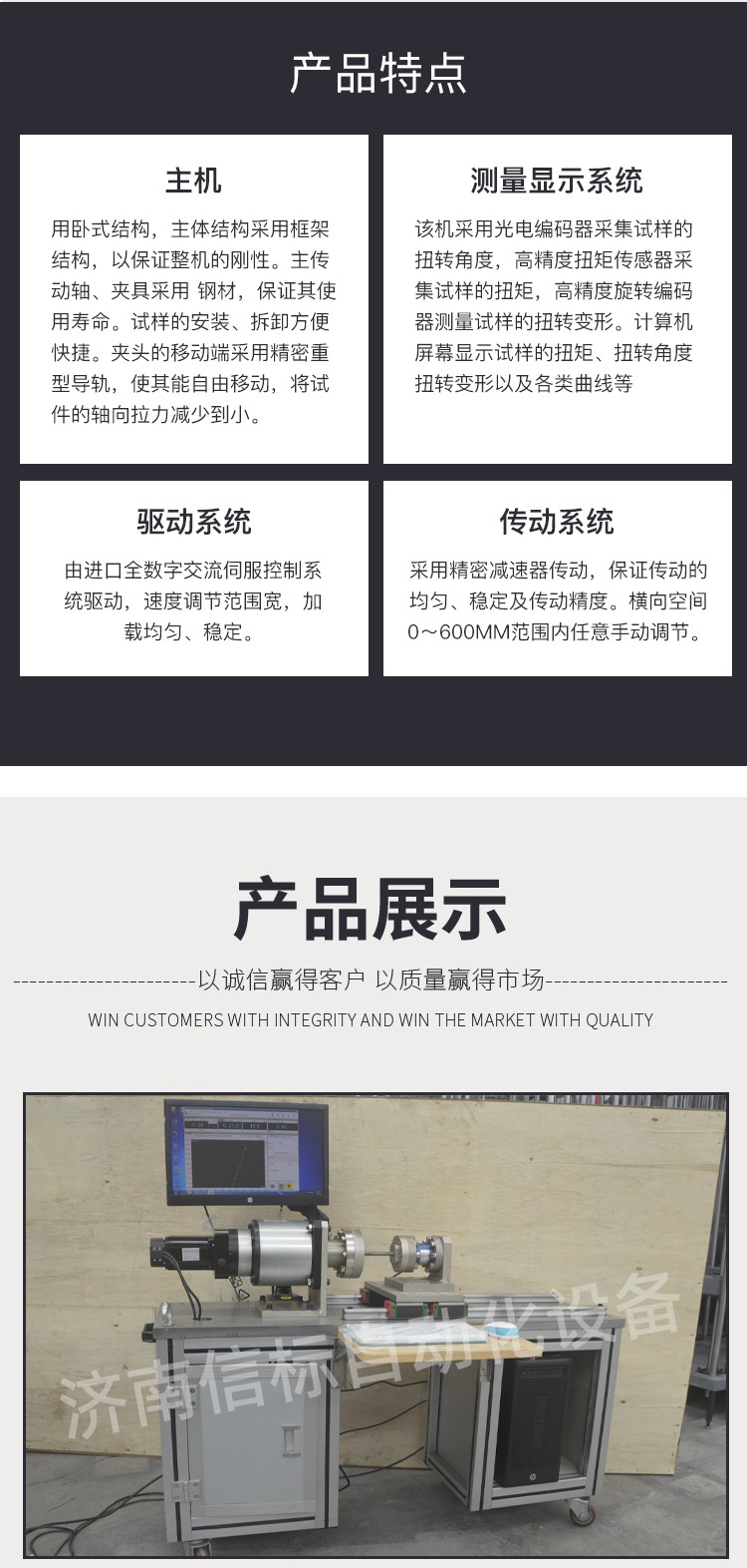 4、測量顯示系統(tǒng):該機(jī)采用光電編碼器采集試樣的扭轉(zhuǎn)角度,高精度扭矩傳感器采集試樣的扭矩,高精度旋轉(zhuǎn)編碼器測量試樣的扭轉(zhuǎn)變形。計(jì)算機(jī)屏幕顯示試樣的扭矩、扭轉(zhuǎn)角度、扭轉(zhuǎn)變形以及各類曲線等。
