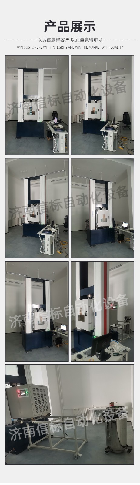 濟南信標自動化設備有限公司主要生產:動靜態萬能疲勞試驗機,接骨板彎曲試驗機,縫合線拉伸疲勞試驗機,髖膝關節磨損試驗機,電子萬能試驗機、液壓萬能試驗機、巖石三軸、四軸,電液拉力試驗機,材料試驗機,高低溫蠕變,高低頻疲勞,拉伸、扭轉、杯突等二十多個系列兩千多個的品種。